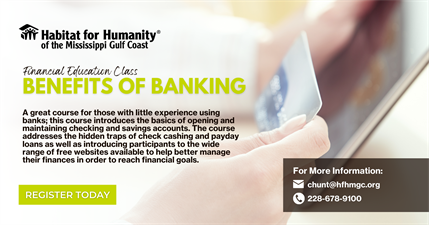 Habitat for Humanity MS Gulf Coast currently offers various financial education curriculums. All classes and coaching are currently offered free of charge, and all courses are open to the public, but registration is required.
