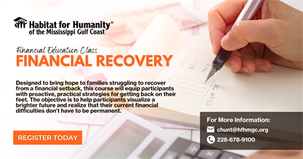 Habitat for Humanity MS Gulf Coast currently offers various financial education curriculums. All classes and coaching are currently offered free of charge, and all courses are open to the public, but registration is required.